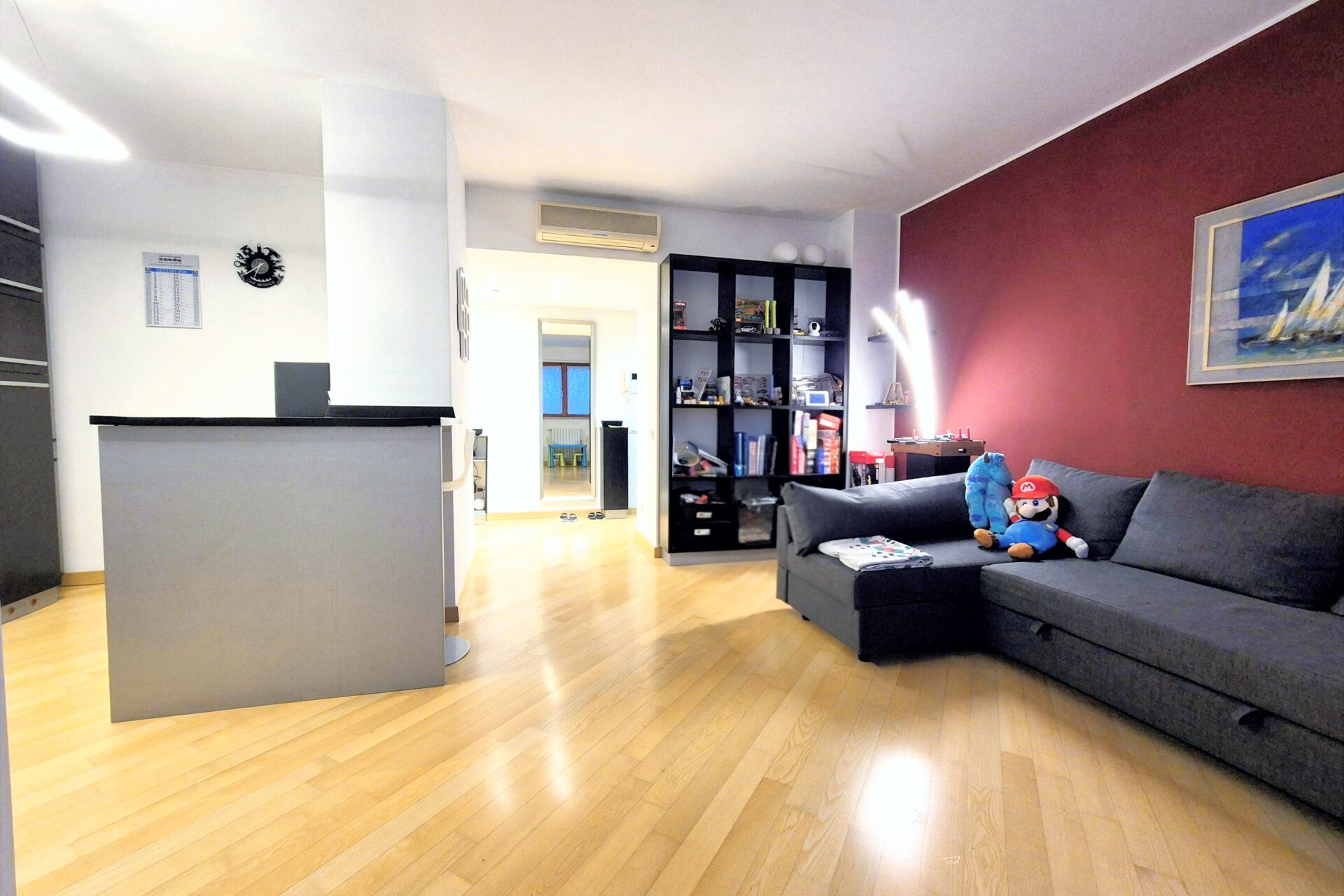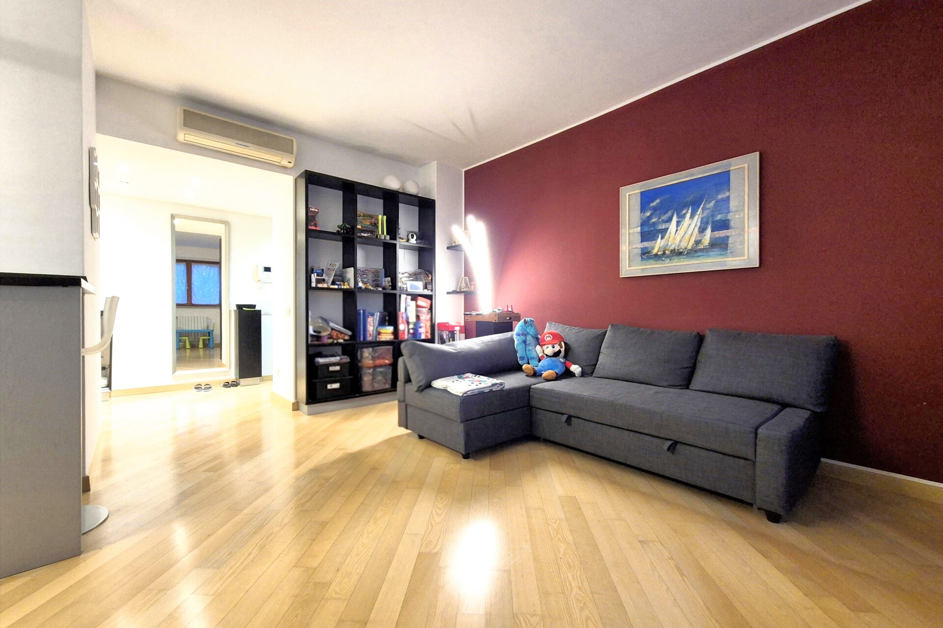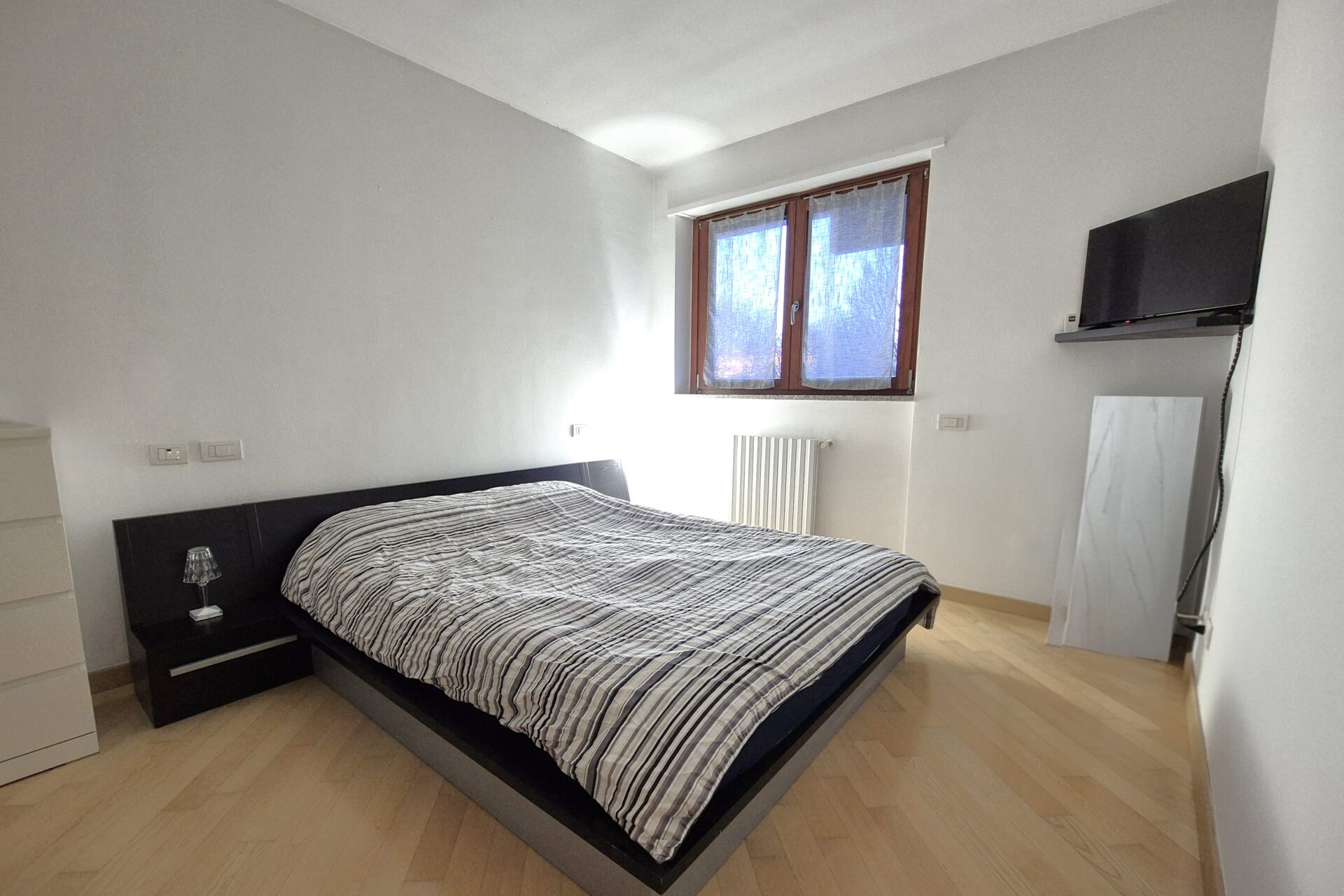 Zona Notte composta Ampia camera da letto matrimoniale, oltre servizio, dotato di ampio box doccia e sanitari sospesi. L’appartamento vanta finiture di pregio: pavimentazione in parquet, infissi in doppio vetro e porta blindata. Il riscaldamento è centralizzato a gestione autonoma ed è presente l’aria condizionata nella zona soggiorno. L’arredamento è in stile contemporaneo, scelto per unire estetica e funzionalità.
