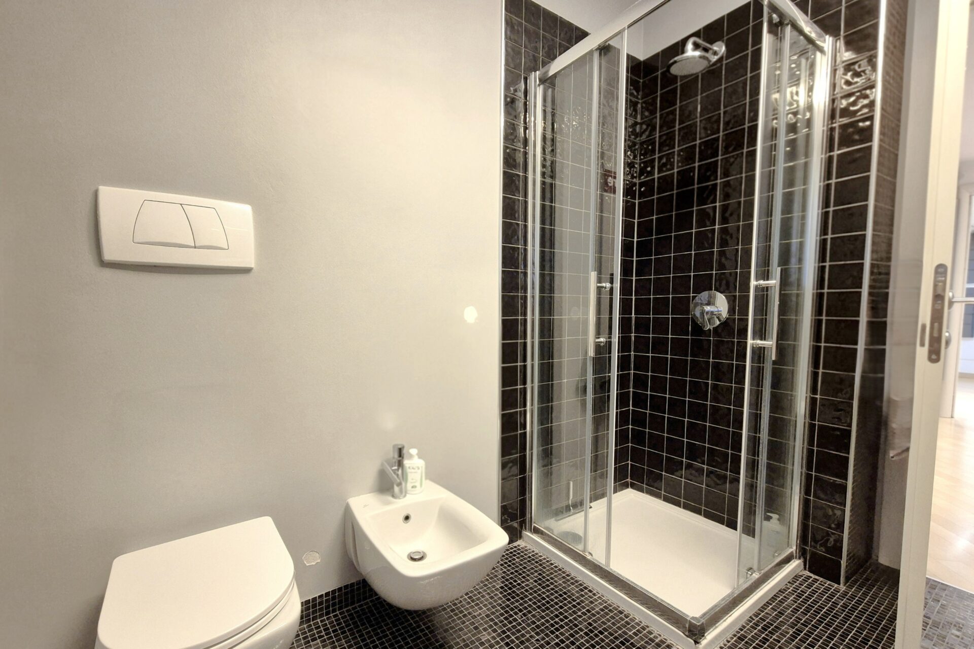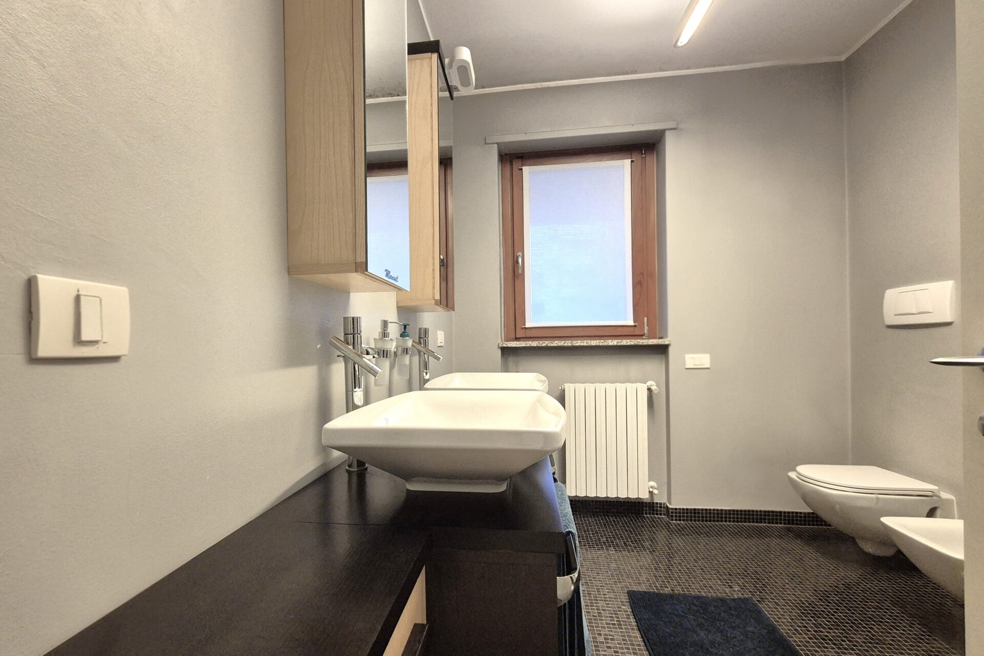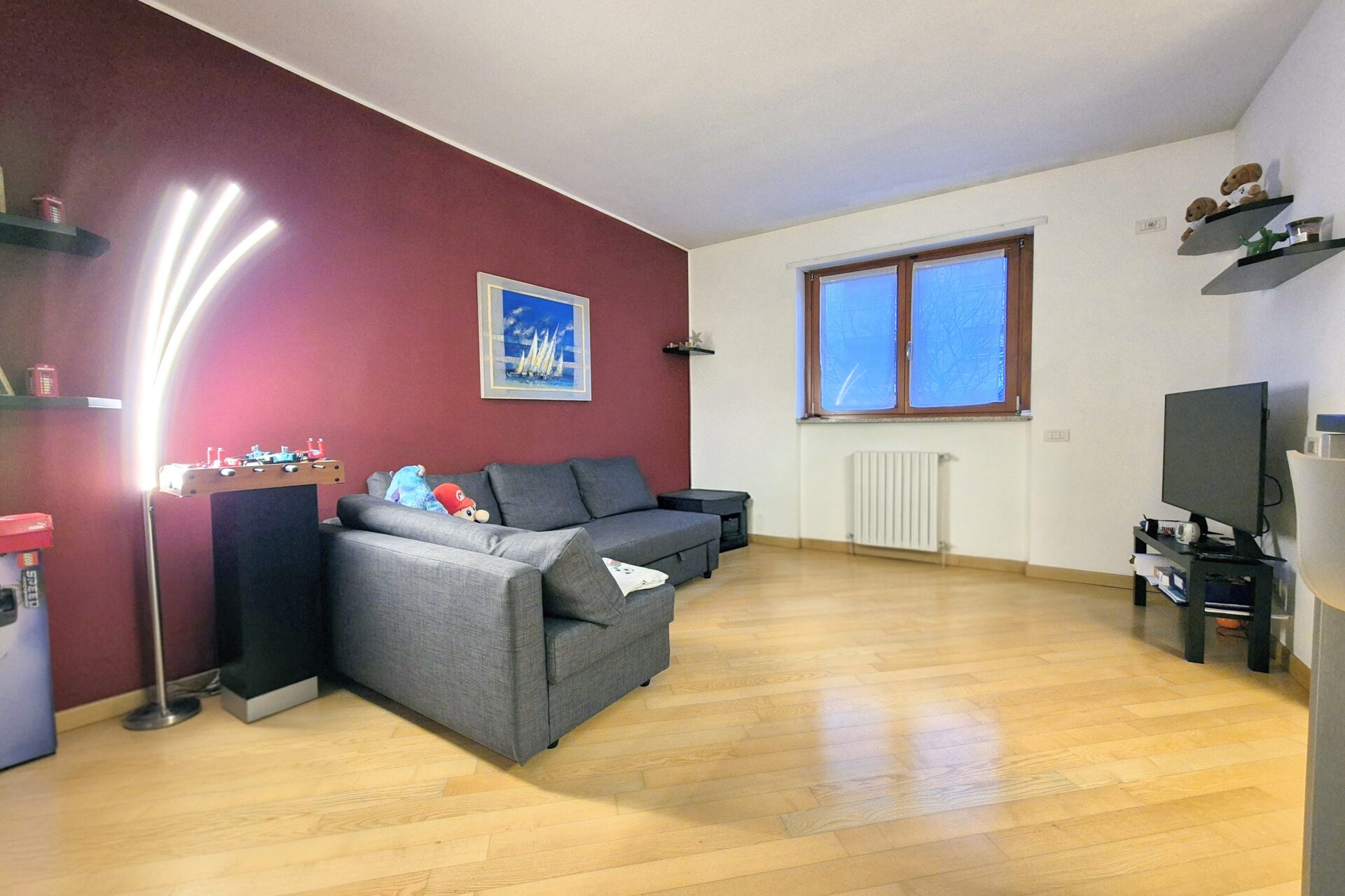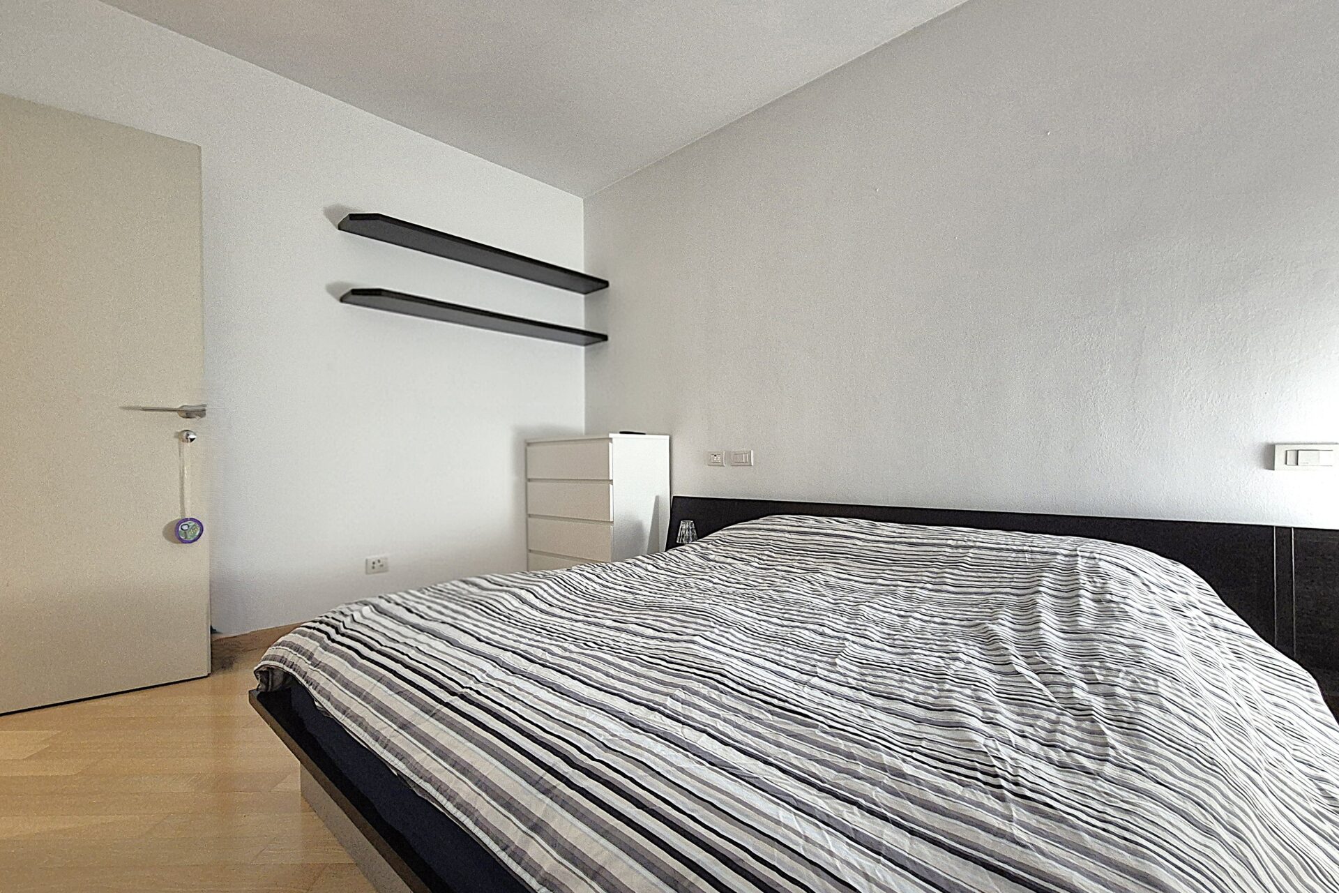 Zona Notte composta Ampia camera da letto matrimoniale, oltre servizio, dotato di ampio box doccia e sanitari sospesi. L’appartamento vanta finiture di pregio: pavimentazione in parquet, infissi in doppio vetro e porta blindata. Il riscaldamento è centralizzato a gestione autonoma ed è presente l’aria condizionata nella zona soggiorno. L’arredamento è in stile contemporaneo, scelto per unire estetica e funzionalità.
