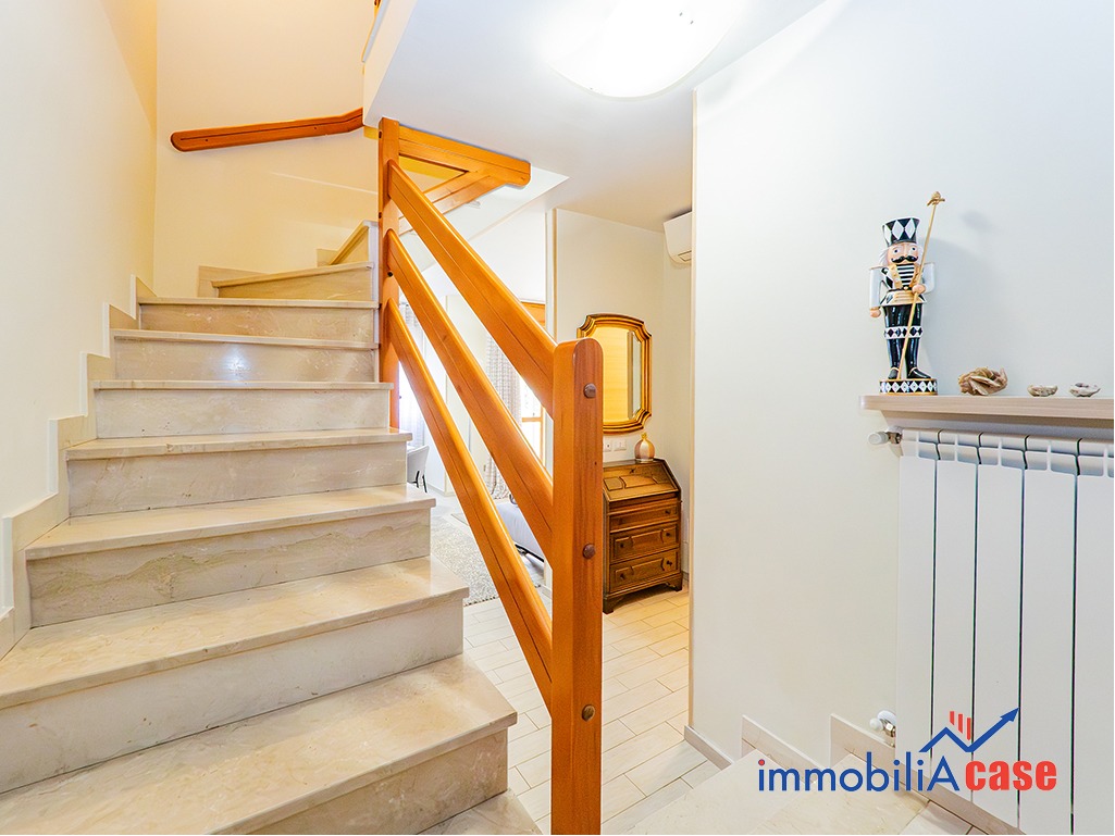 L’abitazione si sviluppa al piano rialzato con ingresso indipendente, luminoso soggiorno attraverso il quale è possibile accedere al giardino di proprietà, ampia cucina abitabile con accesso al terrazzino e bagno. Una comoda scala interna conduce al piano primo, dove sono presenti tre spaziose camere da letto e un secondo bagno finestrato.
